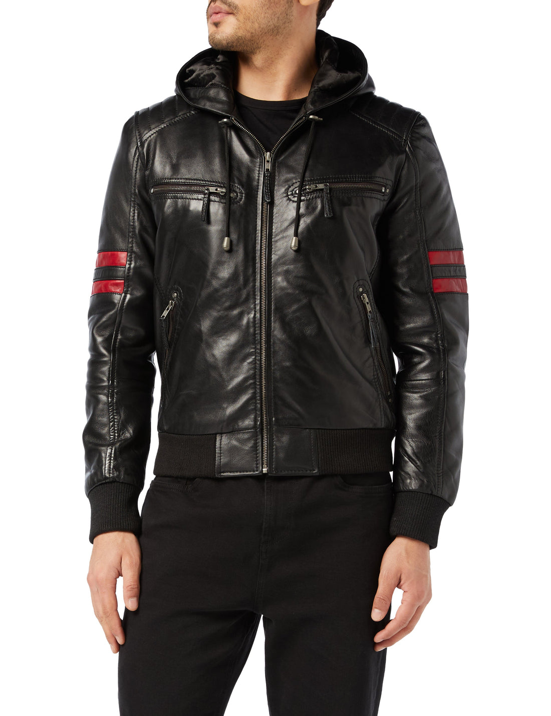 Bomber Leather Jacket with Hood